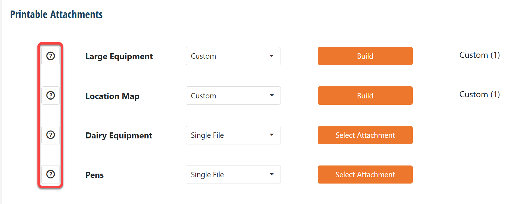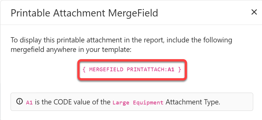 If a user doesn't remember the code, they can click the question mark next to the attachment and it will show the MERGEFIELD data for that item.